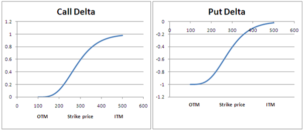 Delcie bliższej jest do bety, lecz wartości przyjmuje od -1 do 1, czyli tak jak korelacja, ale z innych powodów! Jak już wiemy, delta mierzy zmianę ceny opcji względem akcji i nie może się zmienić bardziej niż sama akcja, ponieważ na niej bazuje.