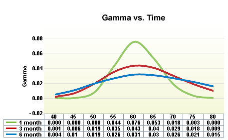 Gamma to tak zwana miara drugiego rzędu. Mierzy to jak delta opcji zmienia się w odpowiedzi na ruch ceny aktywa bazowego.