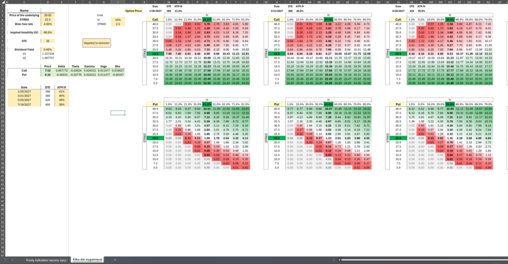 📊Kalkulatory Excel - wycena opcji oraz kalkulator strategii